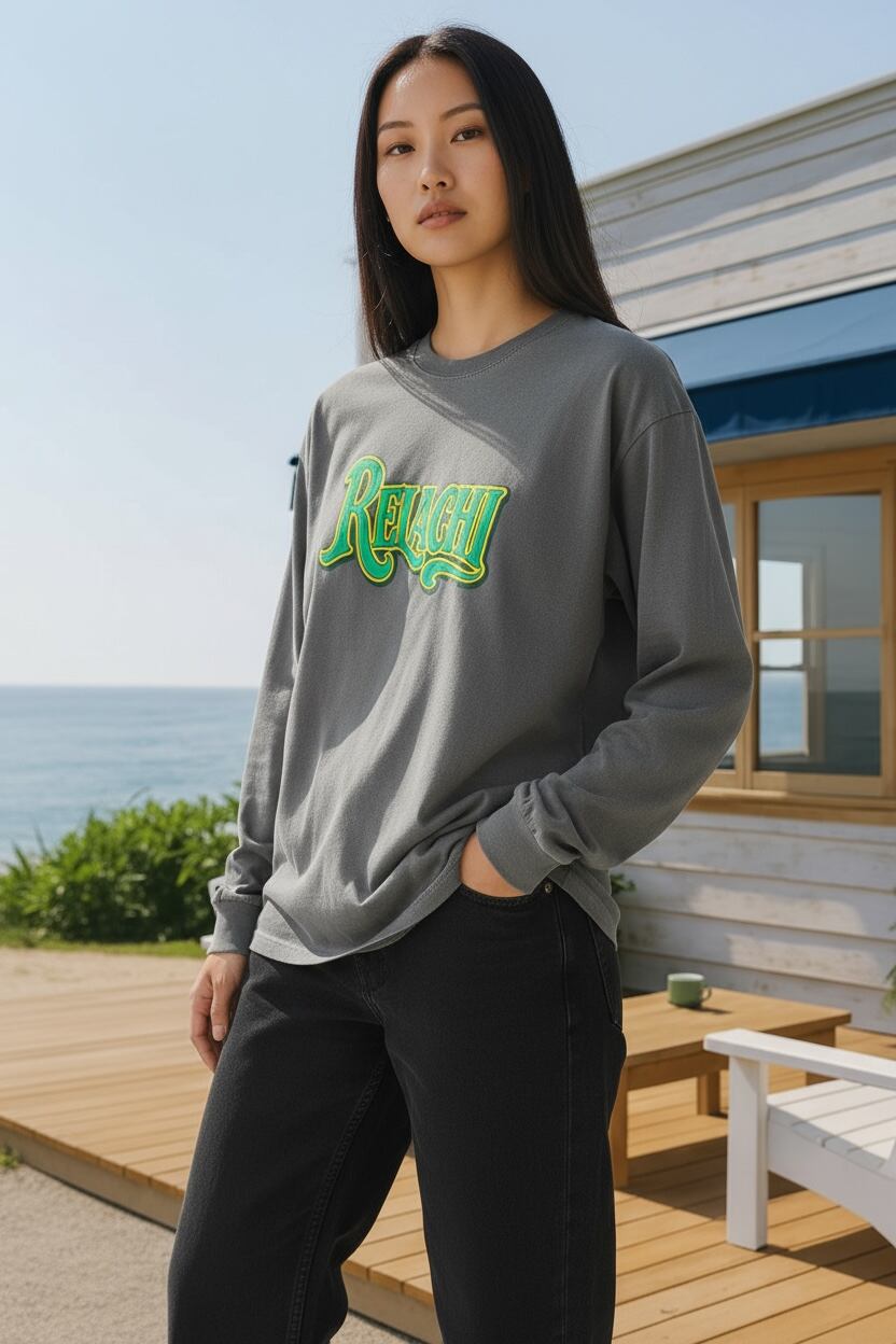 肌触りの良い柔らかな素材を使用しており、快適な着心地が魅力の一枚です。長袖のデザインは、季節を問わず活躍し、軽やかさを感じられます。このTシャツは、カジュアルなスタイルから少しきれいめなコーディネートまで幅広く対応可能で、日常のお出かけやくつろぎの時間にぴったりです。
